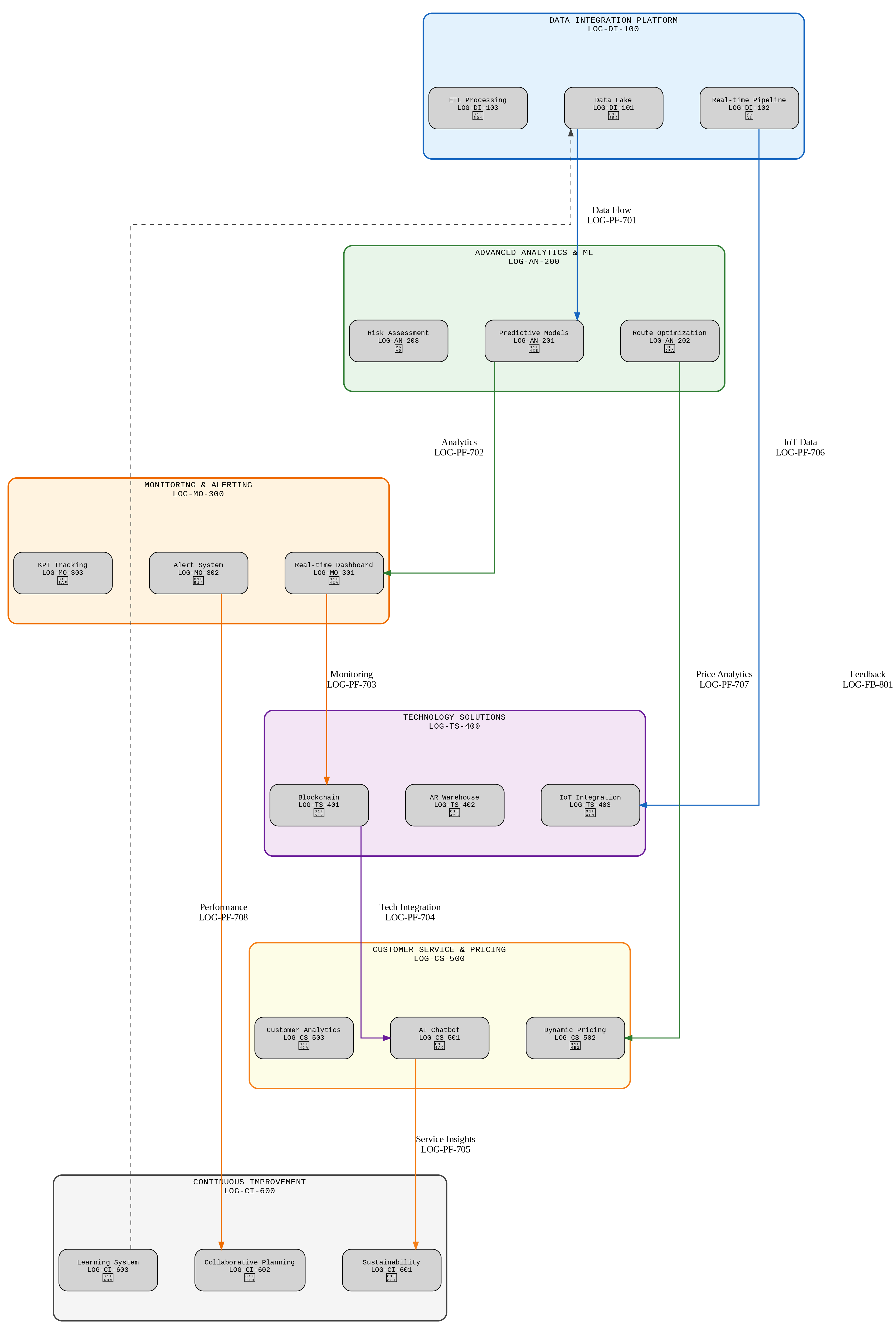 The Enhanced Logistics Operational Insights Solution represents a revolutionary approach to these challenges, offering a comprehensive framework that leverages cutting-edge technologies to transform traditional logistics operations. By integrating advanced data analytics, artificial intelligence, blockchain, and augmented reality, this solution provides transportation companies with a powerful toolkit to optimize operations, enhance decision-making, and drive sustainable growth. Through ten interconnected components, ranging from comprehensive data integration to continuous improvement systems, this solution addresses the full spectrum of modern logistics challenges while establishing a foundation for future innovation and operational excellence.